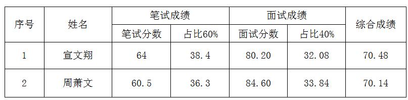 根据《铜陵农商银行劳务派遣制员工社会招聘公告》和省联社有关招工规定,因有两名考生自愿放弃录用资格,按照综合成绩从高到低的顺序进行递补,具体如下: