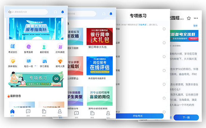 银行易考APP专为参加银行校园招聘考试服务的一站式APP,内容包括:最新招聘资讯、历年银行真题题库及解析、必考考点微课等。