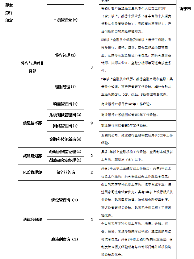 根据业务发展等需要,现面向社会诚邀英才。应聘人员一经录用,我行将与其签订劳动合同,并提供具有市场竞争力的薪酬福利待遇和多元化的职业发展平台。