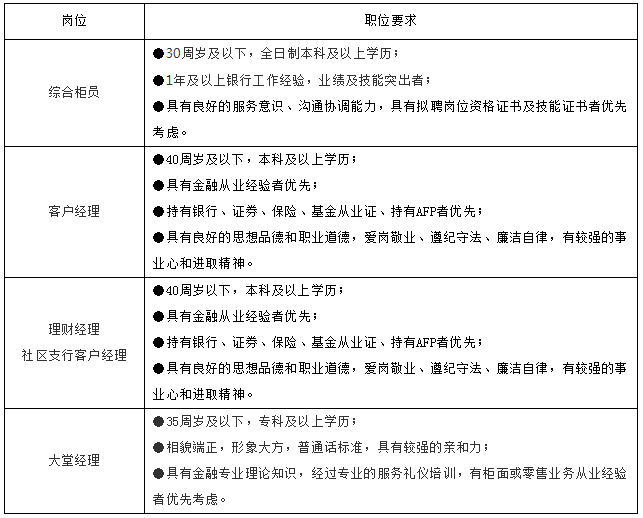 经审核符合条件的,将通过电话等方式与应聘者取得联系(请应聘者保持通讯畅通)。一个月内未接到本行通知,则视作未通过资格审核。个人应聘材料恕不退还,我行代为保密。