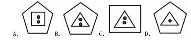 【东吴教育解析】第一组中,外围图形从五边形变成六边形,黑点由3个变成1个,减少2个,第二个图形中,外围图形六边形和内部图形四边形的边数相差2,按照这个规律,问号处,外围应是五边形,排除C;黑点个数应为4个减少2个,变为2个,排除D;且外部图形与内部图形的边数相差2,只有B。故选B。