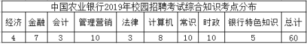 2)农业银行特色知识(5题)----(关于农业银行的相关介绍、银行时政新闻及银行业务知识;购买东吴教育联合银行招聘网出版的《全国银行招聘考试指定教材(2019最新版)》的考生可以添加银行招聘网公众号考前获取中国农业银行特色知识补充资料。
