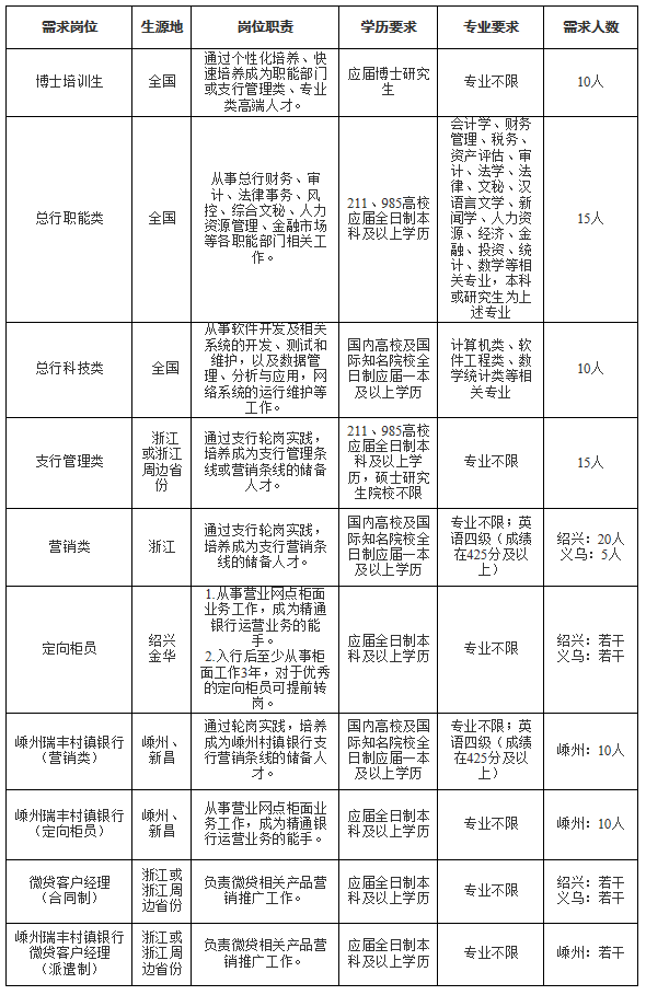(2)应聘者只能报考一个岗位,专业要求为主修专业;国内高校毕业生应能在2019年8月底之前取得毕业证、学位证、报到证;国外院校归国留学生应在2018年9月-2019年8月取得毕业证书,并能在2019年12月31日之前取得国家教育部的学历学位认证;
