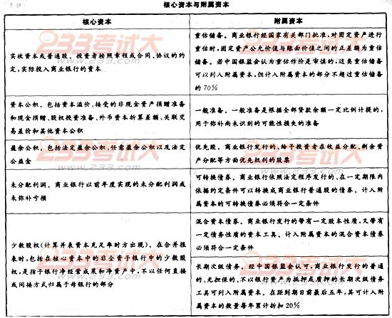 ①资本的构成。资本由核心资本和附属资本两部分构成。