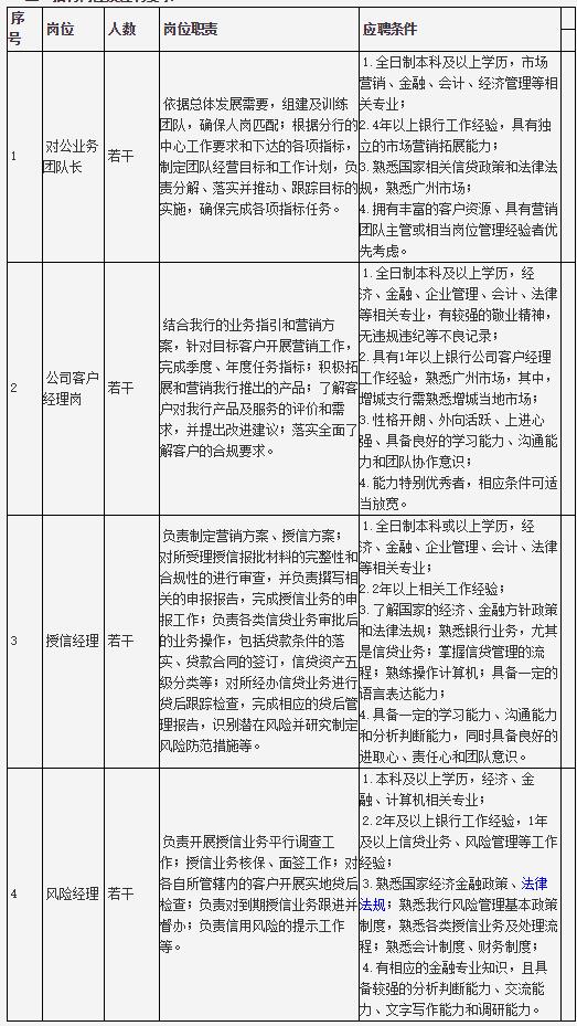 3.简历投递截止时间:2018年1月31日。简历投递后本行将按照应聘条件进行筛选,并通过电子邮件及短信的形式通知符合资格的应聘者参加面试,面试地点:广州市天河区天河路240号丰兴广场C座27楼(太古汇对面)。