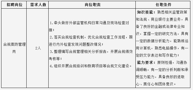 *对应岗位的具体任职资格要求详见我行官网职位信息