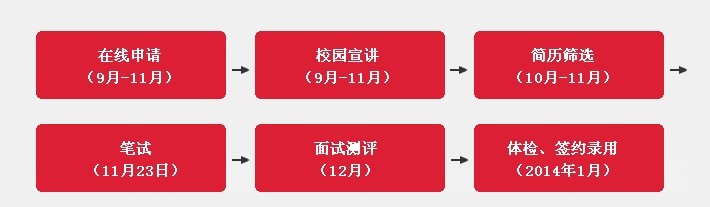 我们将在9月-11月份开展校园宣讲,介绍我行发展历程、企业文化、员工发展、2014年校园招聘计划等,具体行程敬请关注我行网站相关公告。