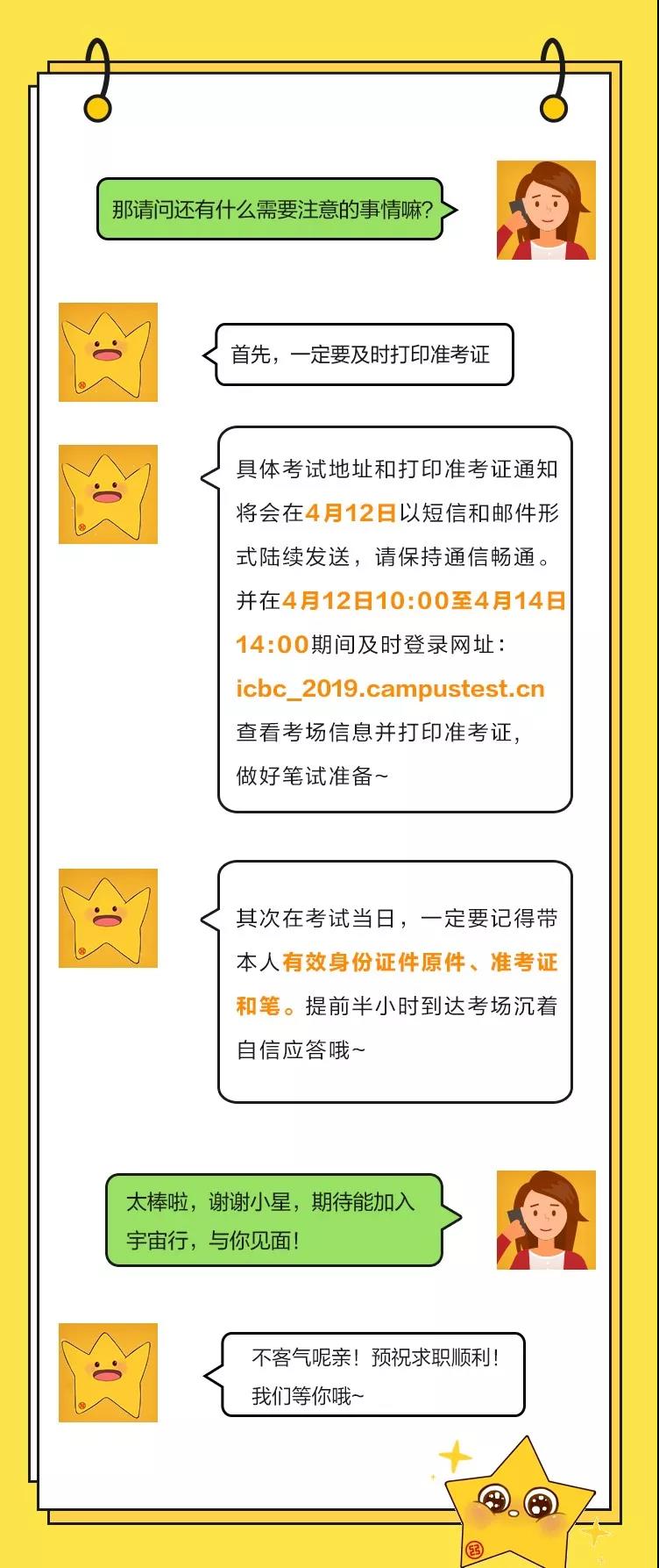 > [全国]2019年中国工商银行春季校园招聘笔试通知公告