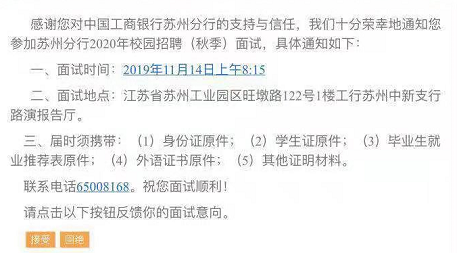 > [江苏]2020年中国工商银行苏州分行校园招聘面试公告