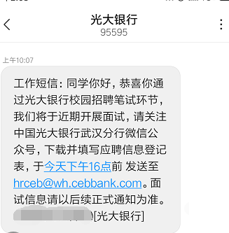 > [湖北]2020光大银行武汉分行校园招聘面试通知