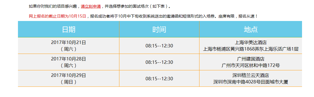 只要你在10月15日之前通过51JOB校园招聘系统投递了简历并通过甄选,你将仍有机会参加后续的面试及在线测试等环节。