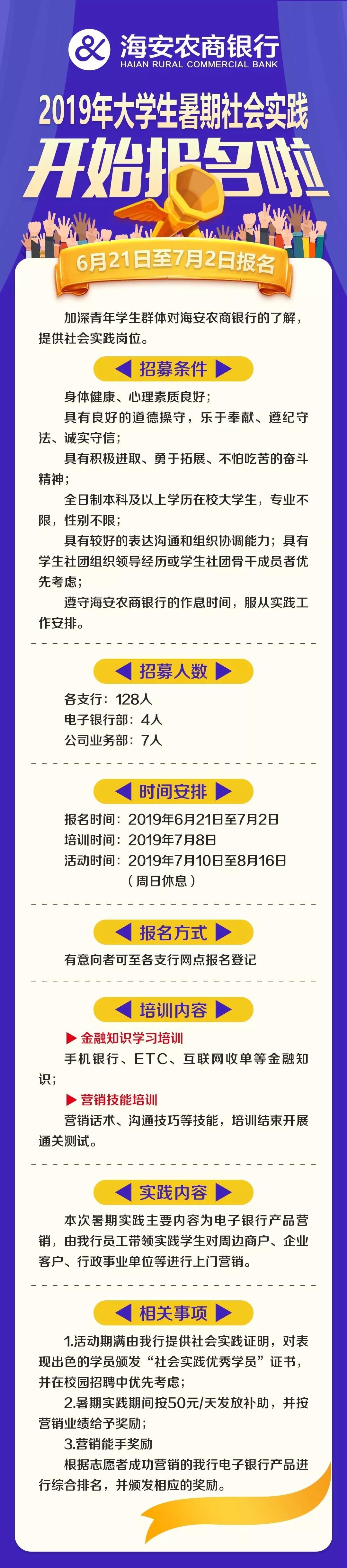 > [江苏]2019年海安农商银行大学生暑期社会实践公告
