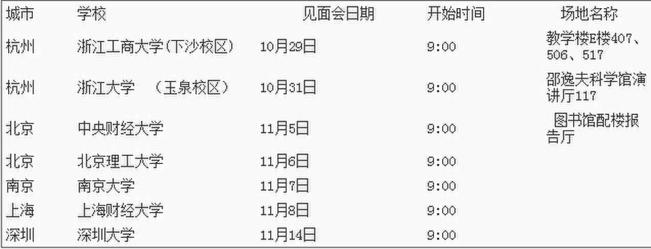 校园小型见面会 (面试、笔试)行程: