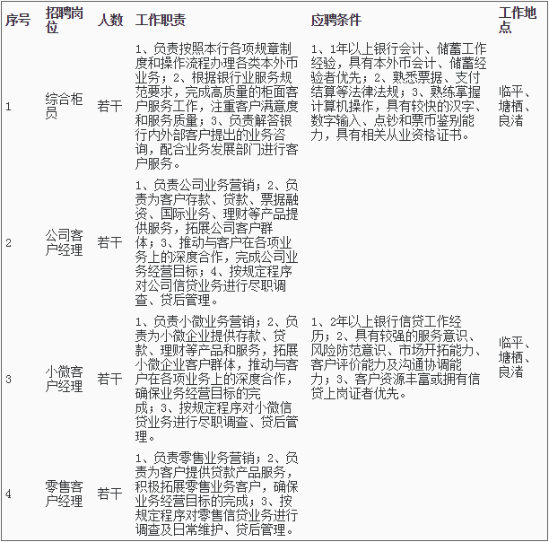 1、招聘岗位及人数见下表,招聘详情可浏览杭州银行网站。