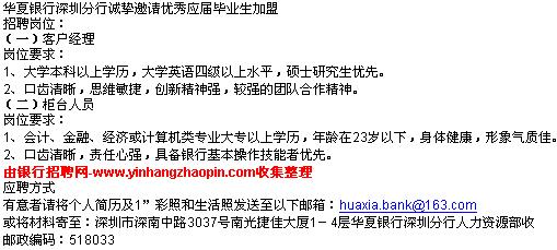 华夏银行深圳分行招聘内容