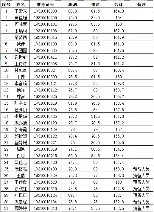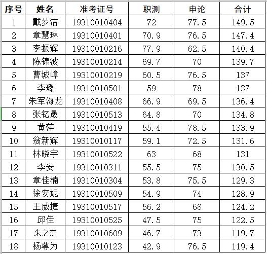 三、入围面试人员名单如下: