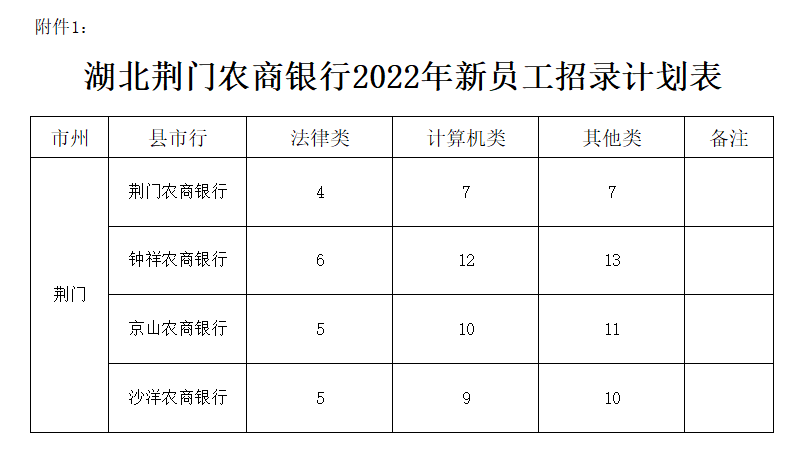 (二)招录名额:99名,其中:法律类专业20人,计算机类专业38人,其他专业41人。本次招录考试以市县农商银行为单位报名,具体名额分配见附件1。