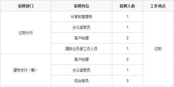2016年锦州银行辽阳分行社会招聘启事