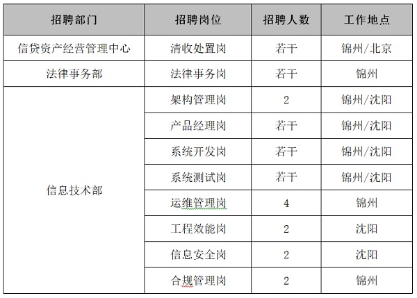 (六)我行招聘信息均通过锦州银行官方网站发布,应聘者在我行招聘平台投递简历且通过筛选方有资格参加后续招聘流程,我行不收取任何报名费、考务费等相关费用。