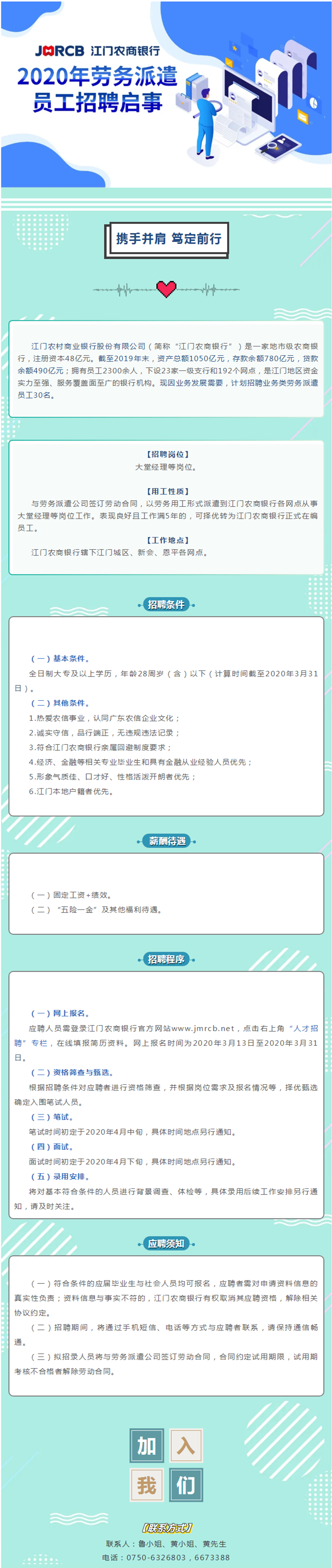 > [广东]2020年江门农商银行劳务派遣员工招聘启事