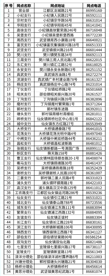 各网点联系表