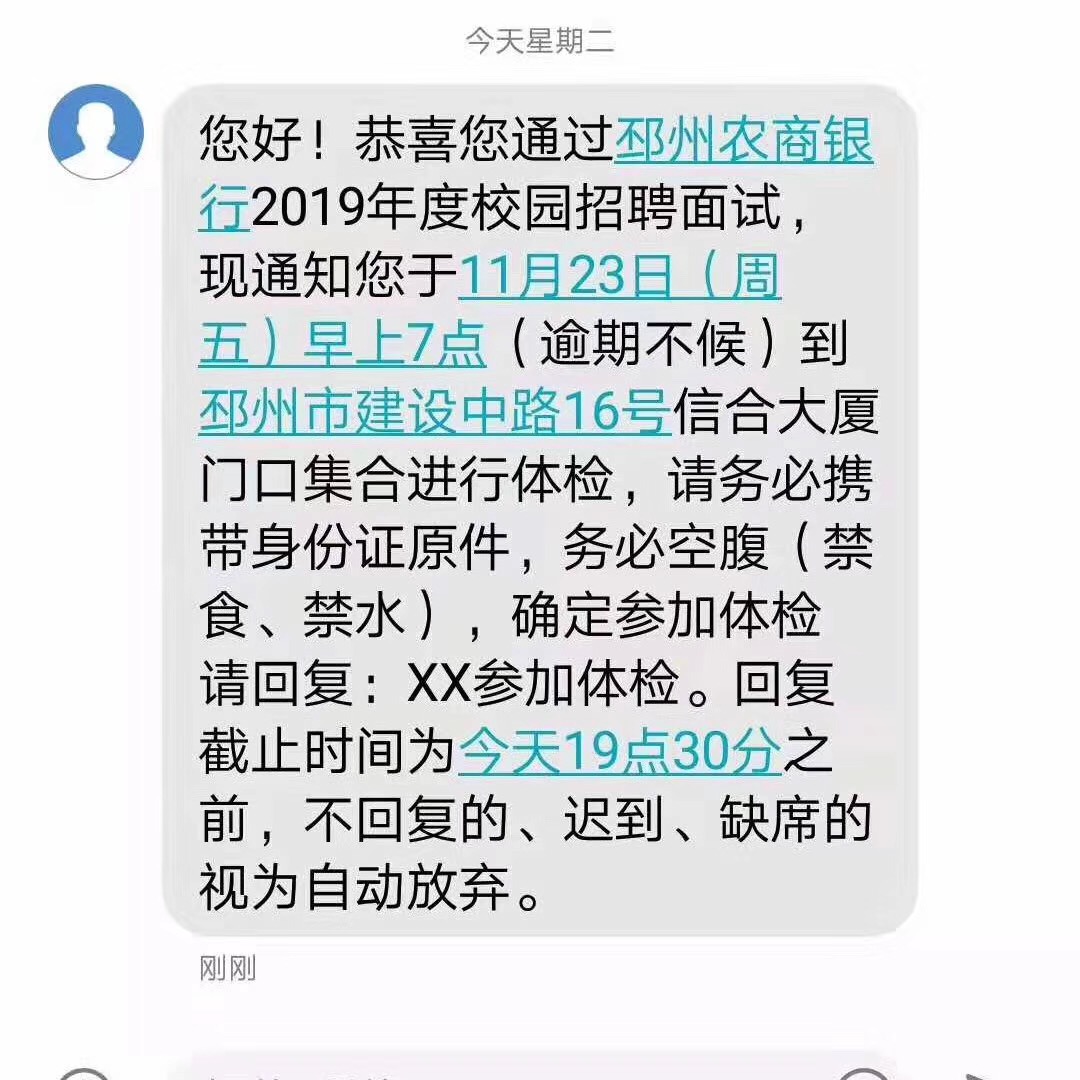 [江苏]2019年邳州农商银行校园招聘体检通知