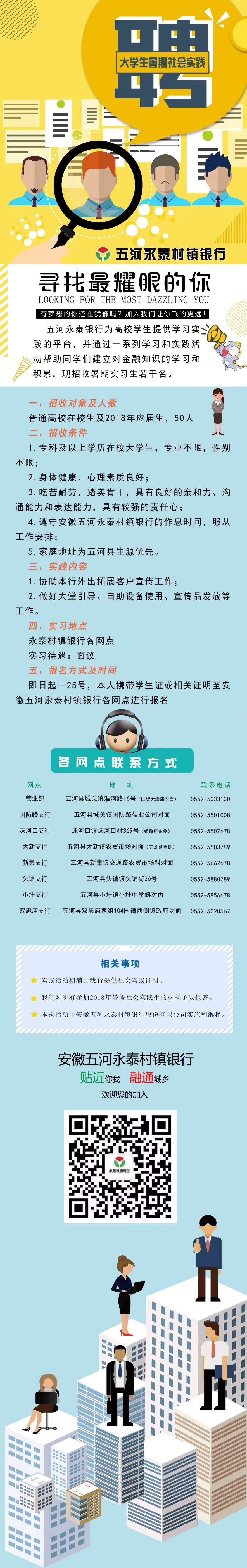 > [安徽]2018年五河永泰村镇银行暑假实习生招聘启事