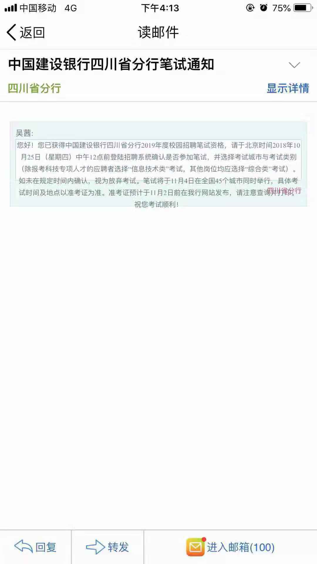 > [四川]2019年中国建设银行四川省分行校园招聘笔试通知