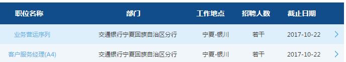 [宁夏]2018年交通银行宁夏区分行校园招聘公告