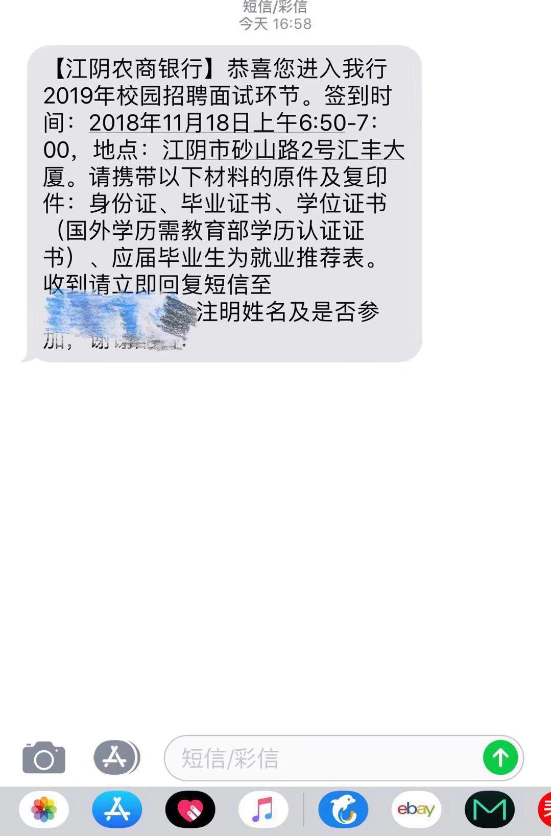 > [江苏]2019年江阴农商银行校园招聘面试通知