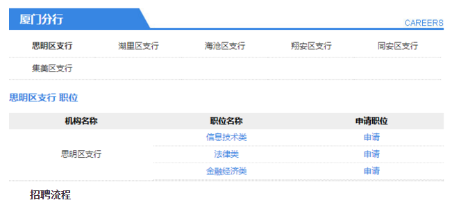 厦门分行招聘职位