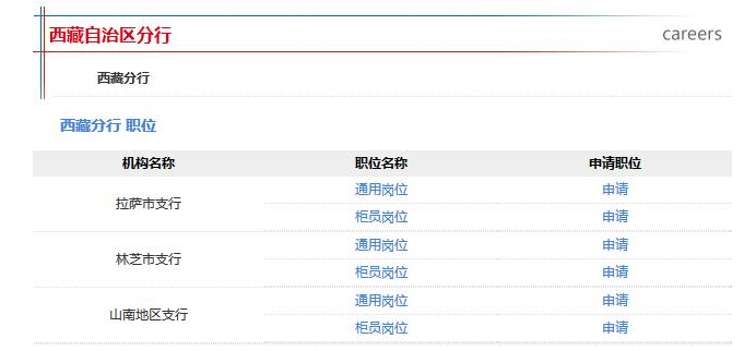 2016年中国邮政储蓄银行校园招聘西藏区分行招聘职位