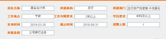 1年以上基金会计工作经验,熟悉估值核算或份额登记业务专业知识,熟练运用估值核算或份额登记系统,熟悉系统逻辑。