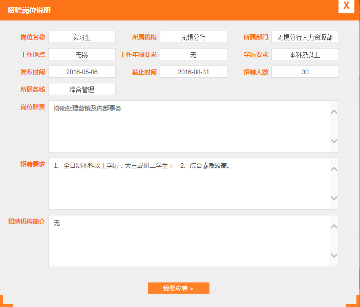 > [江苏]2016年宁波银行无锡分行实习生招聘公告