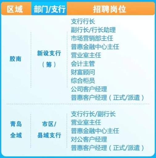 原标题:齐鲁银行青岛分行2024年度社会招聘进行中