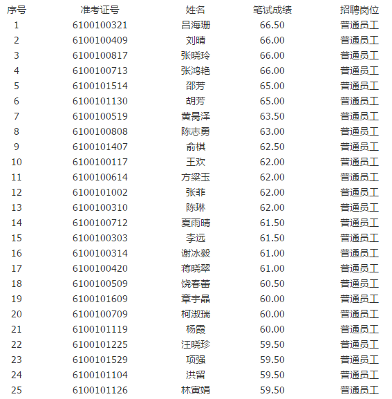 一、面试入围人员:共25名(最后四名笔试成绩并列,一同入围面试),具体名单见附件。