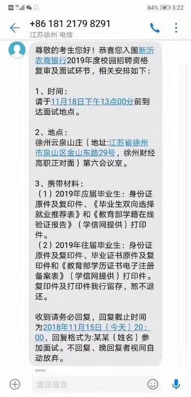 [江苏]2019年新沂农商银行校园招聘面试通知