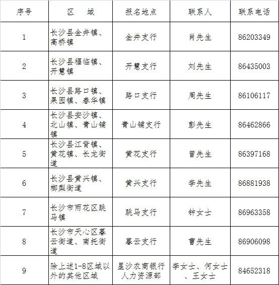 本次招聘工作接受长沙信力劳务派遣公司长沙县分公司以及湖南星沙农村商业银行纪检部门的监督。