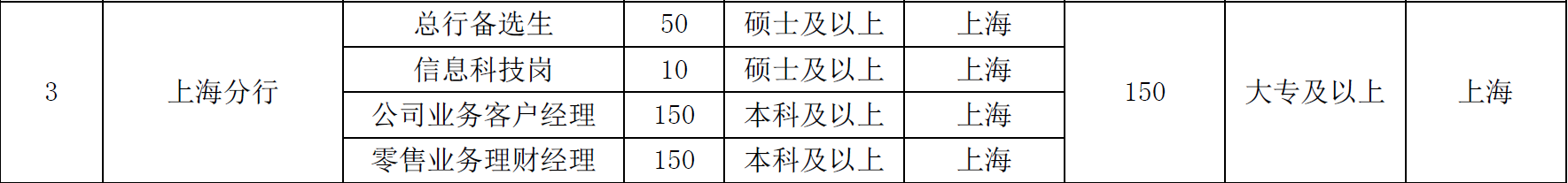 2、“总行备选生”由总行委托上海分行、北京分行、南京分行进行招录培养,作为总行人才储备,培养期满考核合格分配至总行相关部门工作;备选生培养满一年,将按一定比例选拔优秀者作为“总行管理培训生”进行重点培养,培养目标为总行中高级管理人才。