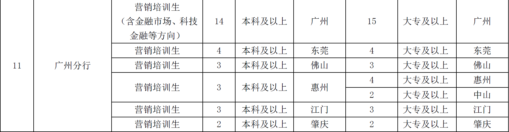 2、柜员岗位为大专及以上学历,
