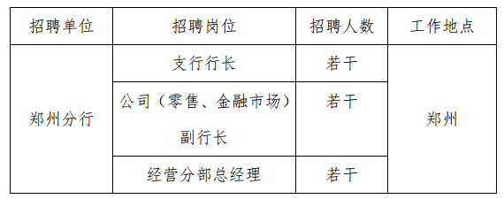 ºÓÄÏ£¬¸÷ÏîÒµÎñÎȽ¡·¢Õ¹£¬×ÛºÏʵÁ¦¿ìËÙÌáÉý£¬³ÉΪºÓÄÏÊ¡×î¾ß¾ºÕùÁ¦µÄÉÌÒµÒøÐÐÖ®Ò»¡£½ØÖ¹2017ÄêÄ©£¬×ʲú×ܶîÍ»ÆÆ2100ÒÚÔª£¬×ÛºÏʵÁ¦ºÍÖ÷ÒªÒµÎñÖ¸±êÁ¬ÐøÊ®¶àÄêλ¾Óµ±µØÍ¬ÒµÇ°ÁС£ÏÖ¸ù¾ÝÒµÎñ·¢Õ¹ºÍ¾Óª¹ÜÀíÐèÒª£¬³ÏÑûµÂ²Å¼æ±¸¡¢¾´ÒµÎñʵ¡¢¸»Óд´Ð¾«ÉñµÄÓÅÐã½ðÈÚÈ˲żÓÃË£¬¹²Í¬¼ûÖ¤ÆÖ·¢ÒøÐÐÖ£ÖÝ·ÖÐÐÄںʽ¡¢¿É³ÖÐø½¡¿µ·¢Õ¹¡£