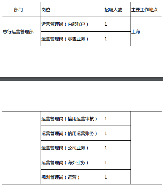 应聘条件:35 周岁以下;全日制本科及以上学历,理工类专业优先;3 年以上银行运营操作或管理工作经历;熟悉相关业务法律法规和监管要求;具备会计知识,熟悉银行支付结算法律法规、会计核算原理和清算流程;英语听说读写能力熟练;具有海外学习工作经历或银行总分行相关运营管理工作经验者优先。