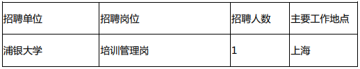 应聘条件:35 周岁以下;经济、金融、法律、管理、计算机等相关专业全日制本科及以上学历;3 年以上培训管理工作经验;对银行核心业务有一定的了解;具有一定的培训组织管理经验;具有良好的口头表达能力和语言文字能力;掌握并熟练运用 word、excel、outlook 等办公软件;具有银行从业经历者优先。