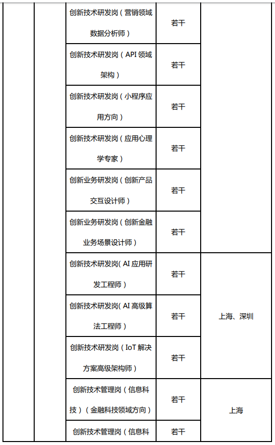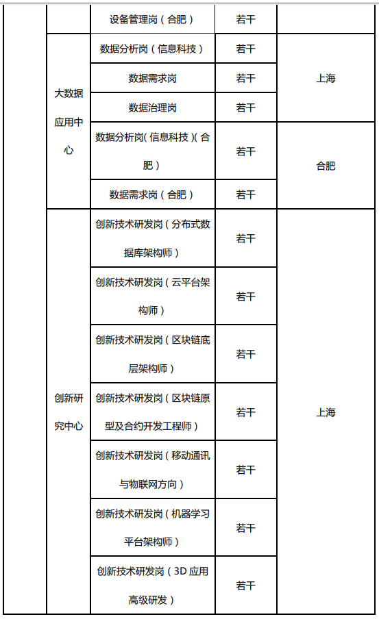 三、招聘岗位列表 (工作地点在上海的岗位,主要面向上海地区招聘)