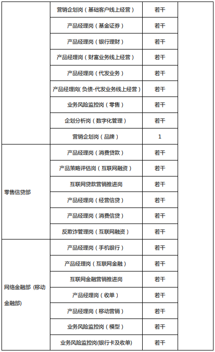 2019年浦发银行总行零售业务板块相关部门招聘启事