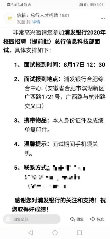 [安徽]2020浦发银行校园招聘(提前批)总行信息科技部面试通知(安徽地区)