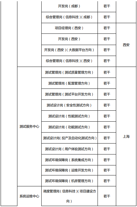 三、招聘岗位列表 (工作地点在上海的岗位,主要面向上海地区招聘)