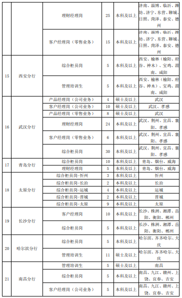 3、专业不限,其中总行信息科技部招聘岗位以计算机与信息技术、大数据挖掘、软件工程、人工智能、金融工程、统计学等理工科专业为主。