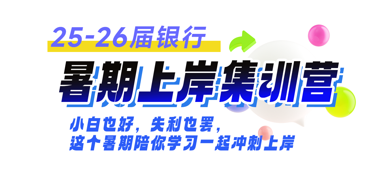 笔试黄金组合&持续5年校招超100道原题 精准直击各类银行必考考点&题型&技巧 | 以实际课程时间为准 | 课程高效组合,多轮跟学 | 在线咨询报名入口 |