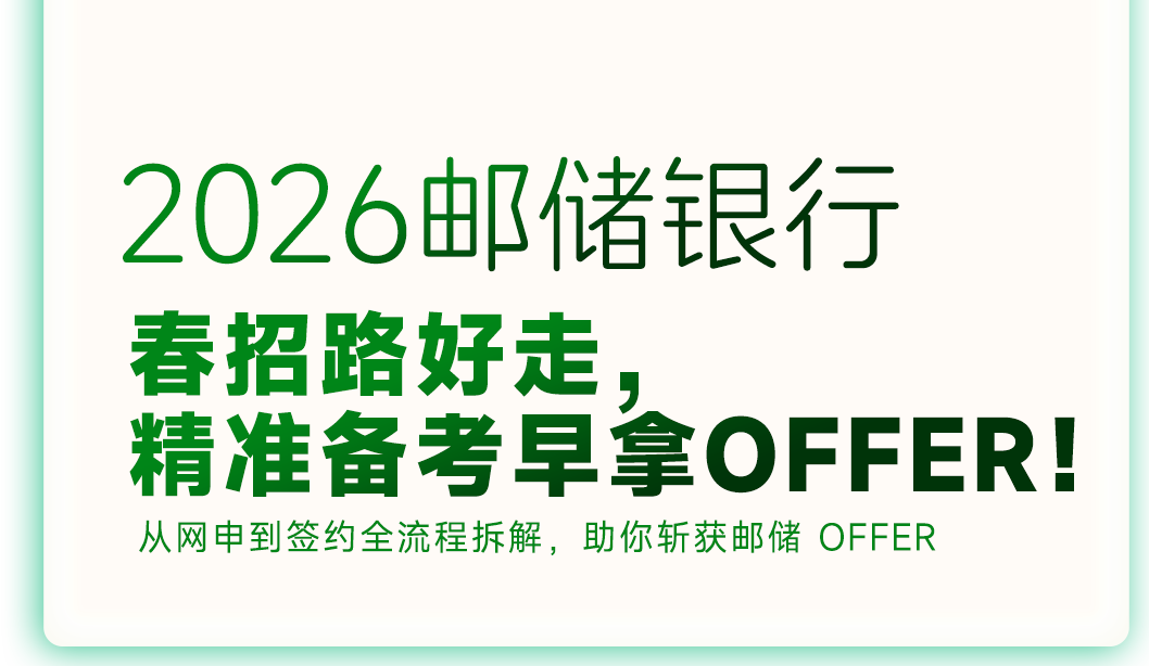 | 刷题冲刺班 | 有基础需提分的考生 | 精讲历年邮储银行考试真题+模拟题,拆解解题技巧,分析易错点 | 针对性提升解题效率与正确率 | 点击获取课程详情 |